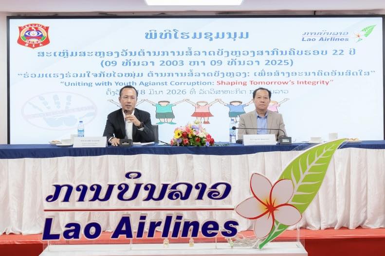 ລັດວິສາຫະກິດການບິນລາວ ຈັດພິທີສະເຫຼີມສະຫຼອງວັນຕ້ານການສໍ້ລາດບັງຫຼວງສາກົນ ຄົບຮອບ 22 ປີ