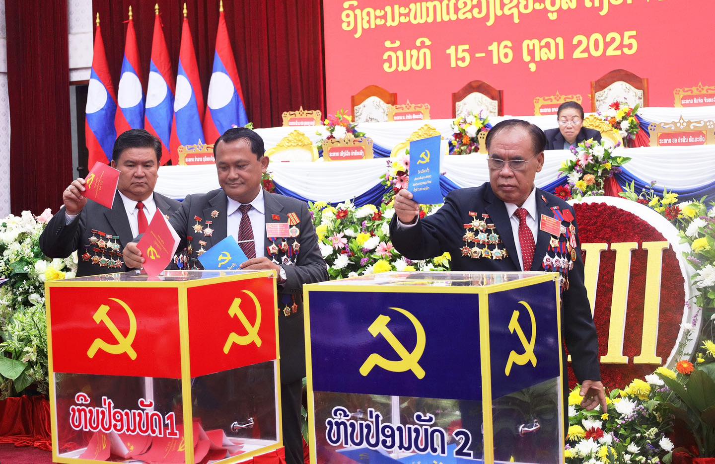 ໃນວັນທີ 15-16 ຕຸລາ 2025 ນີ້ ແຂວງໄຊຍະບູລີ ໄດ້ຈັດກອງປະຊຸມໃຫຍ່ ຜູ້ແທນອົງຄະນະພັກ ຄັ້ງທີ VIII ຂຶ້ນ ທີ່ຫ້ອງປະຊຸມໃຫຍ່ຂອງແຂວງ ໂດຍການເປັນປະທານຂອງສະຫາຍ ພົງສະຫວັນ ສິດທະວົງ ກຳມະການສູນກາງພັກ, ເລຂາຄະນະບໍລິຫານງານພັກ, ເຈົ້າແຂວງໄຊຍະບູລີ, ໃຫ້ກຽດເຂົ້າຮ່ວມໂດຍ ສະຫາຍ ປອ ຄຳພັນ ພົມມະທັດ ກຳມະການກົມການເມືອງສູນກາງພັກ, ຄະນະເລຂາທິການສູນກາງພັກ, ປະທານຄະນະກວດກາສູນກາງພັກ, ປະທານອົງການກວດກາແຫ່ງລັດ, ຫົວໜ້າອົງການຕ້ານການສໍ້ລາດບັງຫຼວງຂັ້ນສູນກາງ, ສະຫາຍ ປອ ນາງ ສູນທອນ ໄຊຍະຈັກ ເລຂາທິການສູນກາງພັກ, ຮອງປະທານສະພາແຫ່ງຊາດ, ມີຜູ້ຕ່າງໜ້າຈາກຄະນະຈັດຕັ້ງສູນກາງພັກ, ບັນດາສະຫາຍຄະນະປະຈຳພັກແຂວງ, ກຳມະການພັກແຂວງ, ພະນັກງານອະວຸໂສບຳນານ, ຜູ້ແທນສົມບູນ ແລະ ແຂກຖືກເຊີນເຂົ້າຮ່ວມທັງໝົດ 405 ສະຫາຍ, ຍິງ 72 ສະຫາຍ, ໃນນີ້ມີຜູ້ແທນສົມບູນ 325 ສະຫາຍ, ຍິງ 56 ສະຫາຍ.