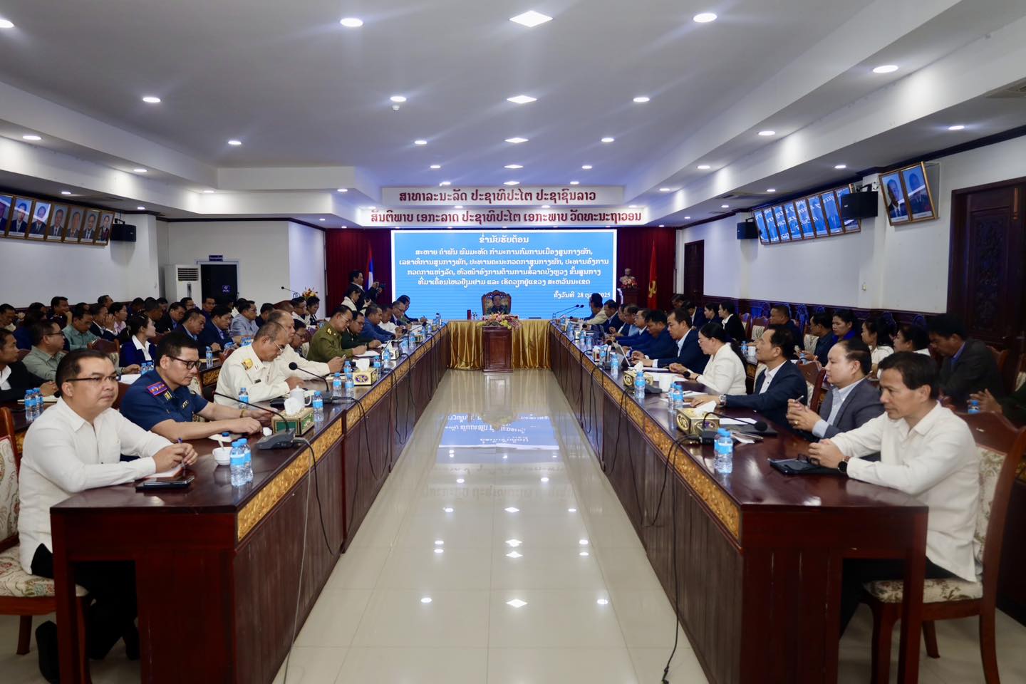 ໃນຕອນເຊົ້າຂອງວັນທີ 28 ຕຸລາ 2025 ທີ່ຫ້ອງປະຊຸມຂອງຫ້ອງວ່າການແຂວງສະຫວັນນະເຂດ ສະຫາຍ ຄຳພັນ ພົມມະທັດ ກຳມະການກົມການເມືອງສູນກາງພັກ ເລຂາທິການສູນກາງພັກ ປະທານຄະນະກວດກາສູນກາງພັກ ປະທານອົງການກວດກາແຫ່ງລັດ ຫົວໜ້າອົງການຕ້ານການສໍ້ລາດບັງຫຼວງຂັ້ນສູນກາງ ໄດ້ເຄື່ອນໄຫວຢ້ຽມຢາມ ແລະ ເຮັດວຽກຢູ່ແຂວງສະຫວັນນະເຂດ. ໂດຍມີ ສະຫາຍ ບຸນໂຈມ ອຸບົນປະເສີດ ກຳມະການສູນກາງພັກ ເລຂາພັກແຂວງ ພ້ອມດ້ວຍຄະນະ, ມີບັນດາຄະນະນຳຈາກພາກສ່ວນຕ່າງໆອ້ອມຂ້າງແຂວງ, ຜູ້ທີ່ເຮັດວຽກງານກວດກາ ແລະ ປະທານກວດກາຈາກບັນດາເມືອງ-ນະຄອນ ເຂົ້າຮ່ວມ.
